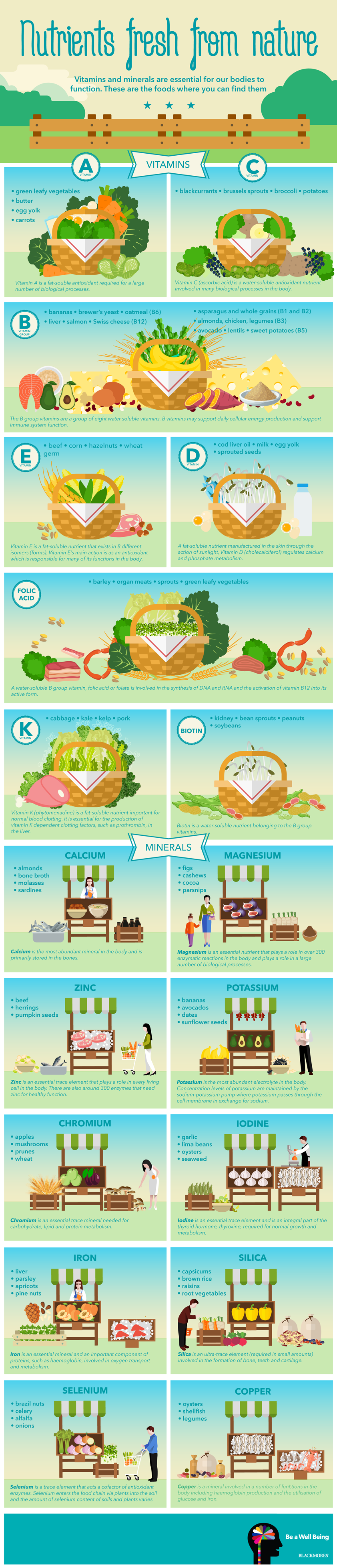18 May 2016BlackmoresVitamins & Minerals: Nutrients fresh from nature 1 mins to readTake a look at the role of vitamins & minerals in the body and the foods that you can find them in.Everyday healthEssentialsMultivitamins
